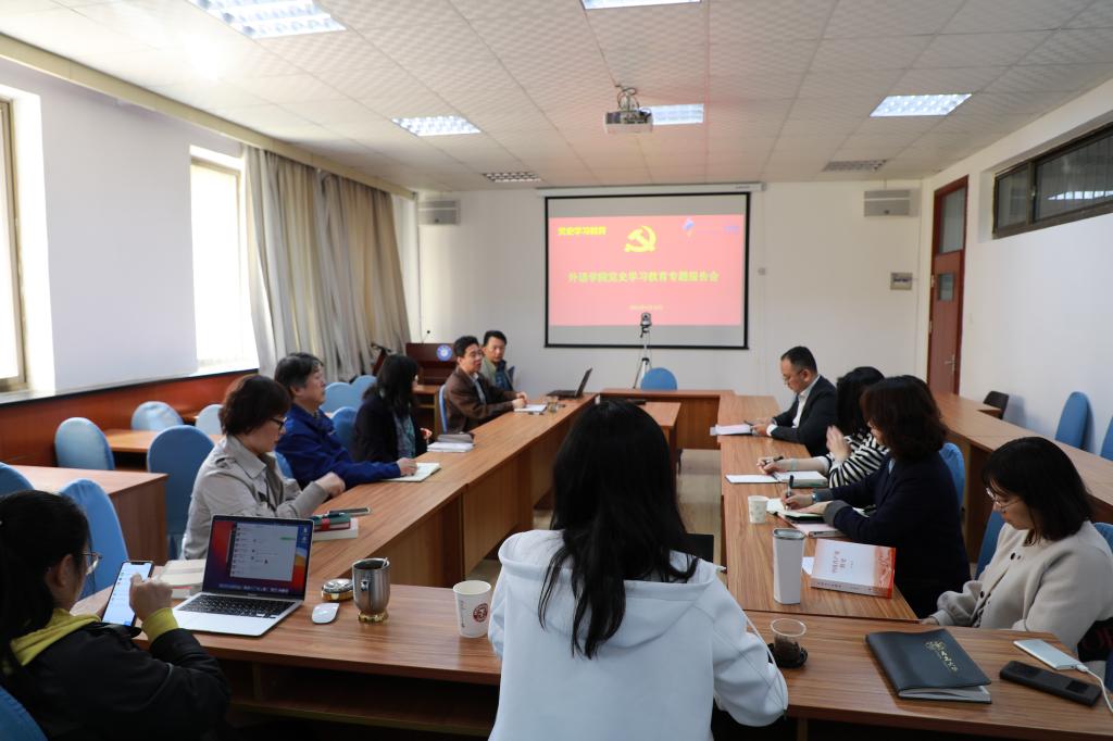 4月15日下午,外語學(xué)院舉辦黨史學(xué)習(xí)教育專題報告會,報告特邀校黨委組織員葛兆富教授主講,學(xué)院黨政領(lǐng)導(dǎo)、各黨支部書記在博文樓312會議室參加現(xiàn)場會,學(xué)院教職工、全體學(xué)生黨員及入黨積極分子通過騰訊網(wǎng)絡(luò)平臺線上參加學(xué)習(xí)。報告會由院黨委書記王傳永主持。