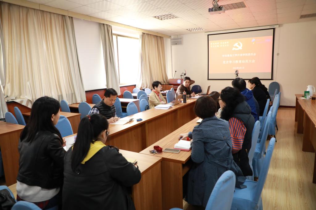 會(huì)上,王傳永傳達(dá)了學(xué)校黨史學(xué)習(xí)教育動(dòng)員大會(huì)、全面從嚴(yán)治黨工作會(huì)、黨建工作專題會(huì)等會(huì)議精神,對(duì)學(xué)院黨史學(xué)習(xí)教育進(jìn)行全面動(dòng)員部署,并帶領(lǐng)大家集體學(xué)習(xí)了習(xí)近平總書記在黨史學(xué)習(xí)教育動(dòng)員大會(huì)上的重要講話。