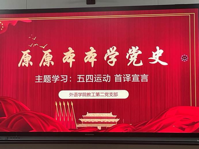 2021年4月22日,青島大學(xué)外語(yǔ)學(xué)院教工第二黨支部在博文樓407召開(kāi)主題學(xué)習(xí)會(huì),活動(dòng)主題為原原本本學(xué)黨史:五四運(yùn)動(dòng),首譯宣言。會(huì)議由教工第二黨支部書(shū)記崔花主持,外語(yǔ)學(xué)院教工第二黨支部黨員參加此次會(huì)議。