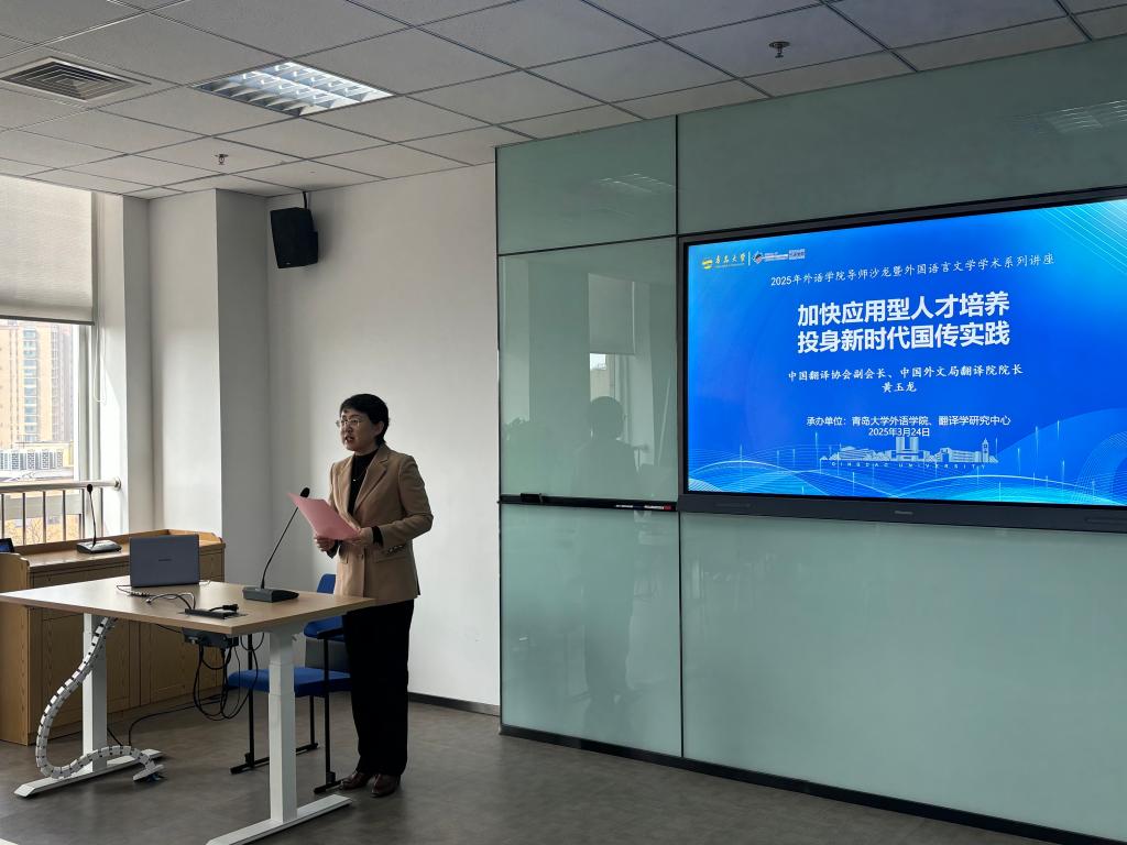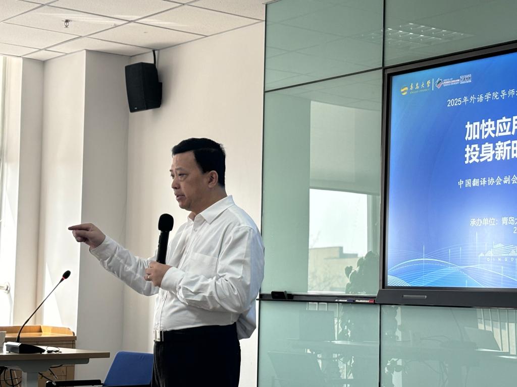 3月24日上午,我院在會議中心403會議室舉辦2025年外語學(xué)院導(dǎo)師沙龍暨外國語言文學(xué)學(xué)術(shù)系列講座“加快應(yīng)用型人才培養(yǎng),投身新時代國傳實踐”。本次活動特邀中國翻譯協(xié)會副會長、中國外文局翻譯院院長黃玉龍主講,外語學(xué)院院長卞建華主持。學(xué)院碩士生導(dǎo)師、MTI在校生、英語語言大數(shù)據(jù)創(chuàng)新實驗班等60余名師生參加了講座培訓(xùn)。