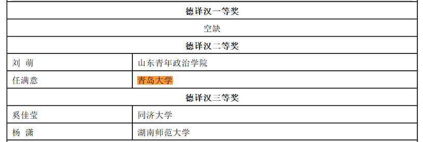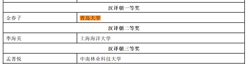 近日,由中國翻譯協(xié)會、中國翻譯研究院、當代中國與世界研究院與湖南師范大學聯(lián)合主辦的第三十六屆韓素音國際翻譯大賽獲獎名單揭曉。青島大學中韓中心主任、我院朝鮮語系教師金春子榮獲漢譯朝組一等獎,2023級德語筆譯研究生任滿意和2021級語言大數(shù)據(jù)創(chuàng)新實驗班學生朱子凝分獲德譯漢組二等獎和英譯漢組優(yōu)秀獎,指導老師分別為綦甲福和王薇。