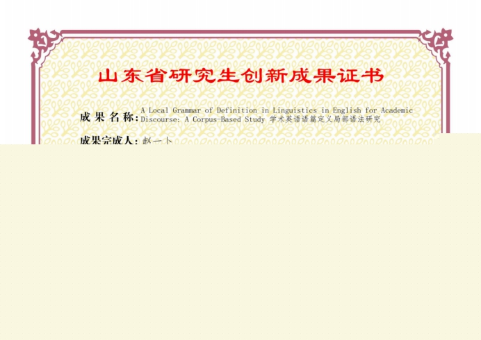 此外,我院外國語言學及應用語言學宮英瑞教授指導的2022級碩士研究生趙一卜,其研究成果A Local Grammar of Definition in Linguistics in English for Academic Discourse: A Corpus-Based Study榮獲山東省研究生創(chuàng)新成果獎。此次系我院首次獲得該獎項。宮英瑞教授在選題論證、框架構建和論文撰寫中給予全過程指導,幫助學生提升科研創(chuàng)新能力。學院定期組織的學術沙龍與專題工作坊,通過體系化交流機制有利提升了學生的科研水平。