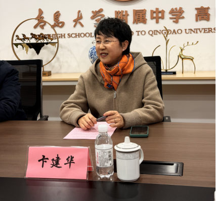 儀式開始,青島大學(xué)外語(yǔ)學(xué)院院長(zhǎng)卞建華首先致辭。卞院長(zhǎng)簡(jiǎn)要介紹了外語(yǔ)學(xué)院的辦學(xué)歷史及學(xué)科優(yōu)勢(shì),并表示青大附中高中的辦學(xué)理念與青島大學(xué)校訓(xùn)高度契合,其多元課程特色和素質(zhì)教育成果令人矚目。此次實(shí)習(xí)實(shí)踐基地的建立,是雙方深化合作的重要起點(diǎn),未來(lái)將在教研課題聯(lián)合申報(bào)、教師交流指導(dǎo)、學(xué)生實(shí)習(xí)實(shí)踐等方面開展全方位合作,推動(dòng)校地教育資源互補(bǔ)互促。
