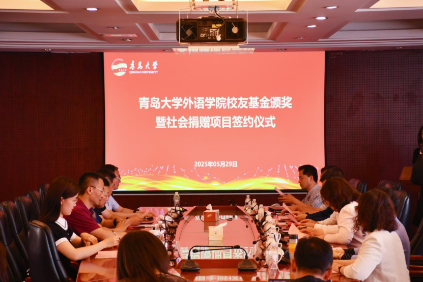 5月29日下午,青島大學(xué)外語學(xué)院校友教育基金頒獎暨企業(yè)捐贈項目簽約儀式在浮山校區(qū)辦公樓407會議室舉行。校黨委常委、副校長劉恩賢出席活動并致辭。招遠(yuǎn)帝源服飾有限公司總經(jīng)理、96級日語系校友李永勝,青島智邦慧海文化傳播有限公司總經(jīng)理王軍,上海文策信息科技有限公司授權(quán)代表、2002級計算機(jī)系校友蔡世祿、學(xué)校相關(guān)部門負(fù)責(zé)人、外語學(xué)院獲獎師生代表等出席活動。