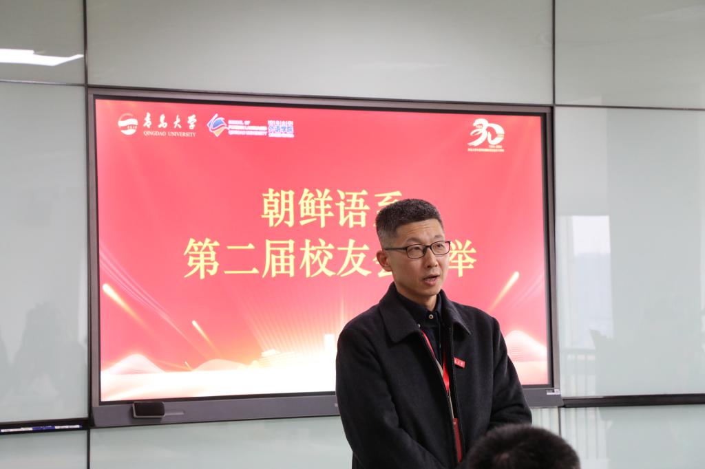 大會(huì)還舉行了朝鮮語(yǔ)系第二屆校友會(huì)換屆儀式。系主任崔花宣讀了新一屆校友會(huì)成員名單,新任會(huì)長(zhǎng)1998級(jí)劉東介紹新一屆校友會(huì),表示將積極搭建校友與母校之間的橋梁,凝聚校友力量,助力朝鮮語(yǔ)系高質(zhì)量發(fā)展。