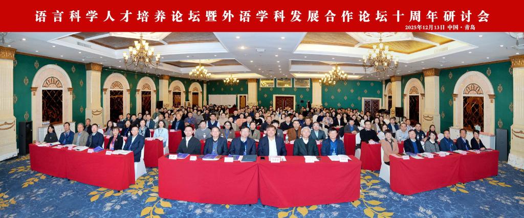 2025年12月12日至14日,語(yǔ)言科學(xué)人才培養(yǎng)論壇暨外語(yǔ)學(xué)科發(fā)展合作論壇十周年研討會(huì)暨青島大學(xué)區(qū)域國(guó)別研究院揭牌儀式在我校隆重舉行。本次研討會(huì)由中國(guó)英漢語(yǔ)比較研究會(huì)外語(yǔ)學(xué)科發(fā)展研究專(zhuān)業(yè)委員會(huì)、語(yǔ)言科學(xué)研究與人才培養(yǎng)協(xié)作組、青島大學(xué)主辦,青島大學(xué)外語(yǔ)學(xué)院、青島大學(xué)區(qū)域國(guó)別研究院、濟(jì)南大學(xué)外國(guó)語(yǔ)學(xué)院承辦,福州譯國(guó)譯民集團(tuán)有限公司、上海凌極信息技術(shù)有限公司、《外國(guó)語(yǔ)》編輯部、北京大學(xué)出版社、科學(xué)出版社協(xié)辦。來(lái)自全國(guó)80余個(gè)高校、科研院所、出版機(jī)構(gòu)及信息技術(shù)公司的180余名專(zhuān)家、學(xué)者參會(huì)。我校副校長(zhǎng)李榮貴教授出席會(huì)議并致辭,學(xué)校人文社科處、國(guó)際交流合作處、相關(guān)學(xué)院主要負(fù)責(zé)人參加會(huì)議。外語(yǔ)學(xué)院院長(zhǎng)卞建華教授主持會(huì)議。